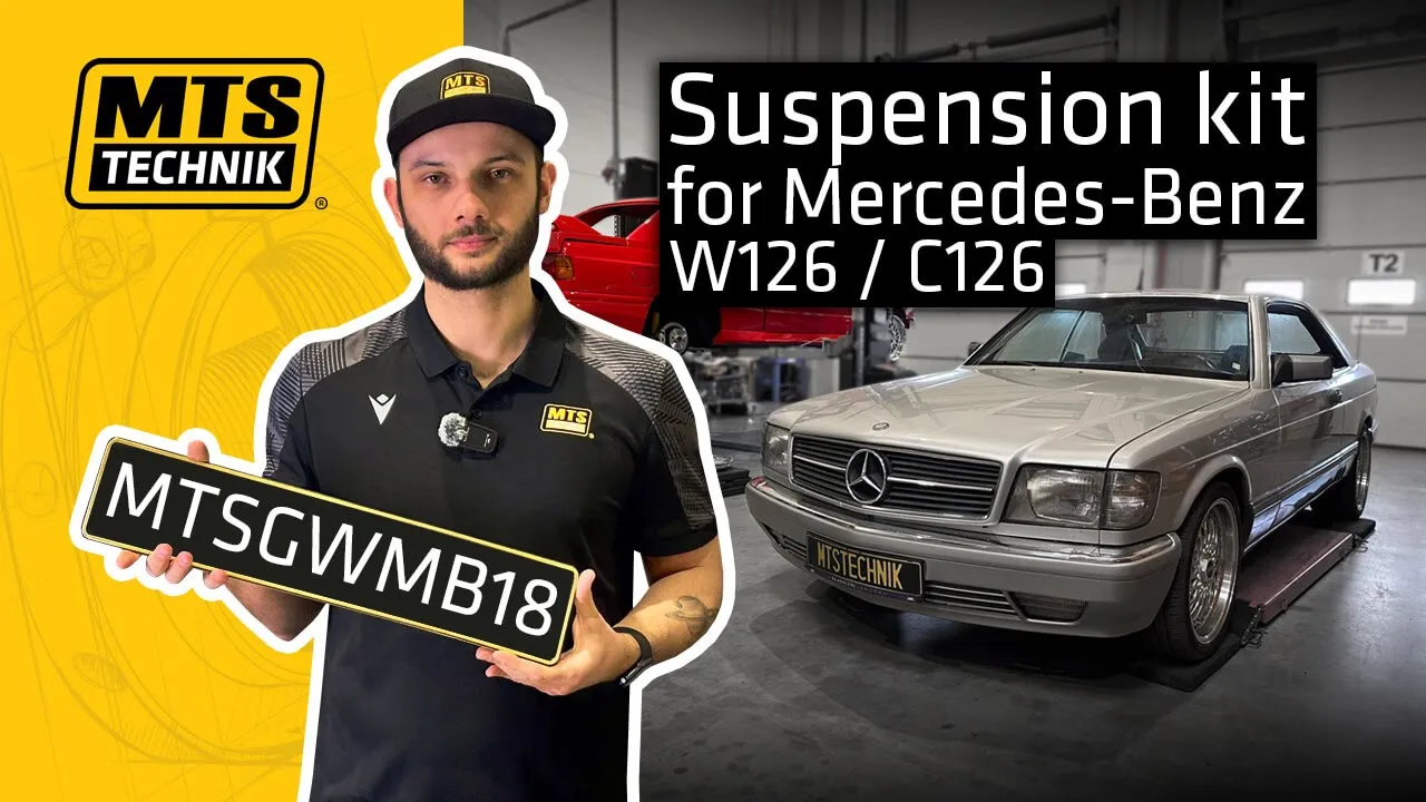 Gewindefahrwerk MTS Technik für Mercedes-Benz S-CLASS (W126), tieferlegen die Vorderachse von 45 - 70 mm, und die Hinterachse von 35 - 75 mm. Geeignet für Baujahr: 10/79 - 06/91, für die Motorversion: 260 SE (126.020) / 280 S (126.021) / 280 SE, SEL (126.022, 126.023) / 3.8 / 300 SD (126.120) / 300 SDL (126.125) / 300 SE, SEL (126.024, 126.025) / 350 SD, SDL / 380 SE, SEL (126.032) / 380 SE, SEL (126.032, 126.033) / 420 SE, SEL / 420 SE, SEL (126.034) / 420 SE, SEL (126.034, 126.035) / 500 SE, SEL / 500 SE, SEL (126.036) / 500 SE, SEL Cat / 560 SE, SEL / 560 SE, SEL (126.038) / 560 SE, SEL (126.038, 126.039).