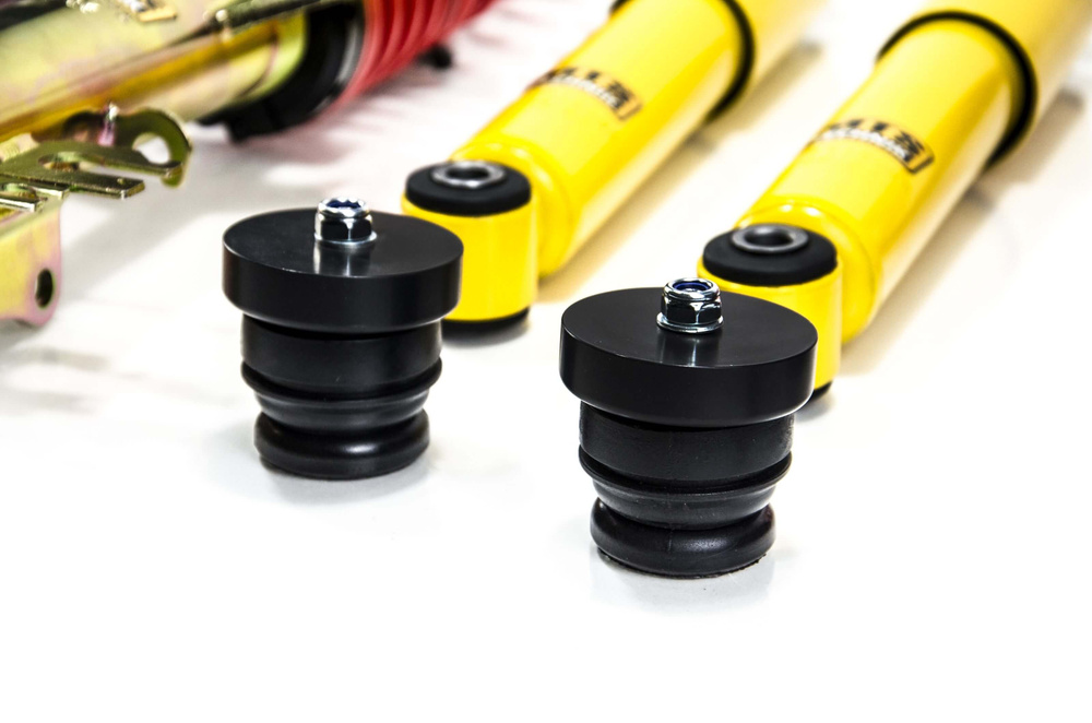Specjalnie dobrany rodzaj gwintu i szeroki zakres regulacji zawieszenia umożliwia optymalne ustawienie wysokości auta także w zamontowanym stanie.