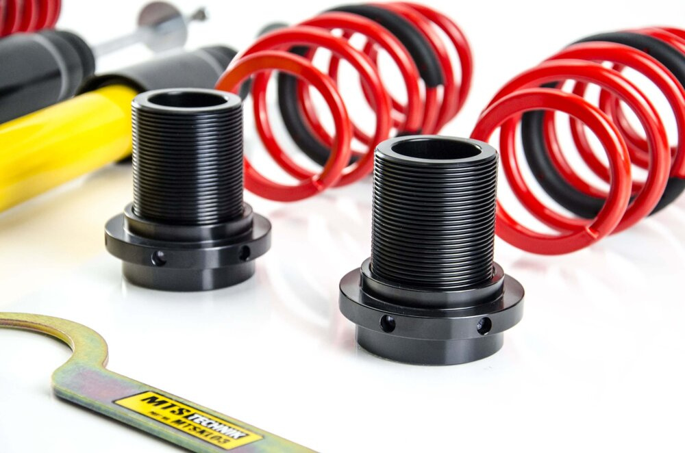 Specjalnie dobrany rodzaj gwintu i szeroki zakres regulacji zawieszenia umożliwia optymalne ustawienie wysokości auta także w zamontowanym stanie.